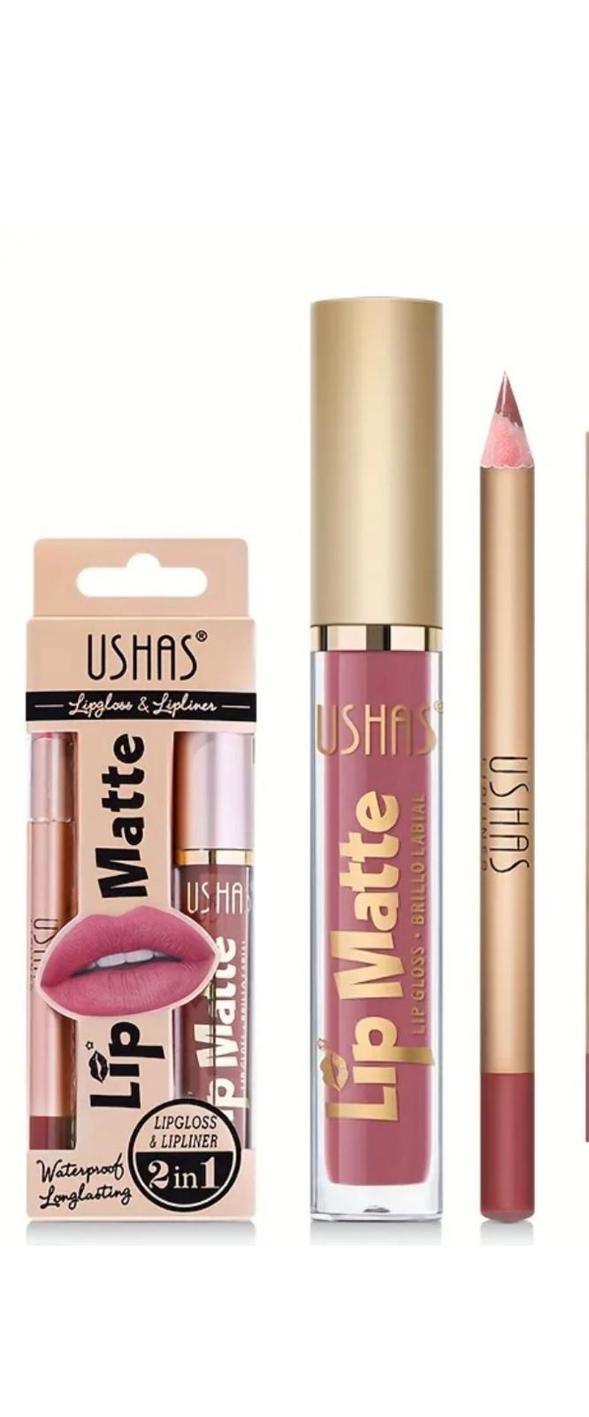 Set ruj solid + creion buze Ushas - transformă-ți buzele și completează-ți machiajul cu acest set de ruj cu creion mat. Descoperă culori intense și definire perfectă pentru buzele tale, într-un look elegant și mat. Alege dintr-o gamă variată de nuanțe, potrivite pentru birou, o întâlnire sau un eveniment special. Acest set este compact și ușor de transportat, fiind perfect pentru a fi luat in călătorii sau păstrat in geanta de zi cu zi.